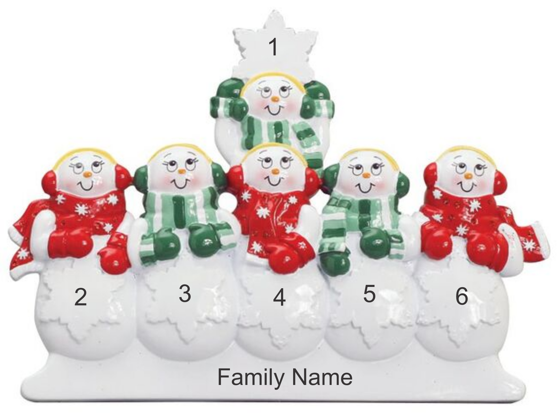 Personalize with 6 names, along with a family name or message at the bottom. This tabletop decoration will be a memorable holiday decoration for years to come!