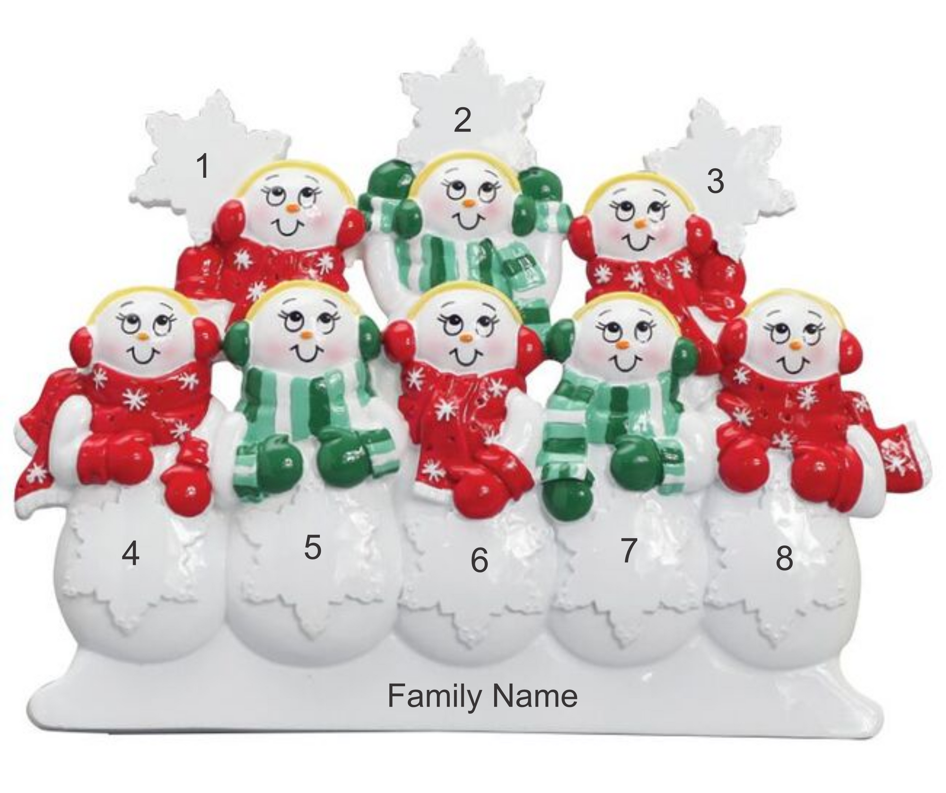 Personalize with 8 names, along with a family name or message at the bottom. This tabletop decoration will be a memorable holiday decoration for years to come!