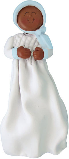 Baptism, Christening, Baby Boy, Dark Skin, African American, Personalized Christmas Ornament