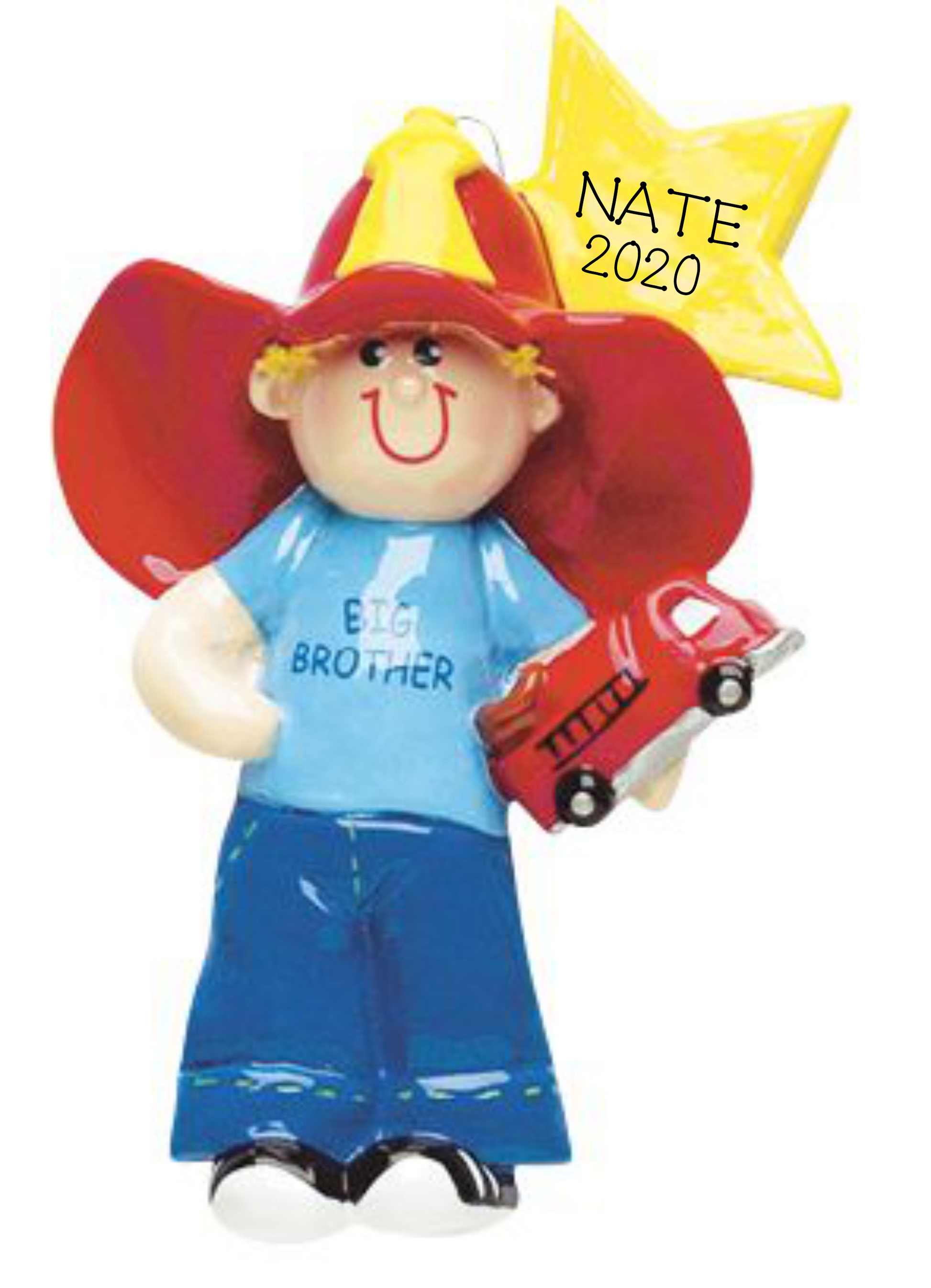 Celebrate the coolest new brother with this awesome ornament! We can personalize with a name and year.
