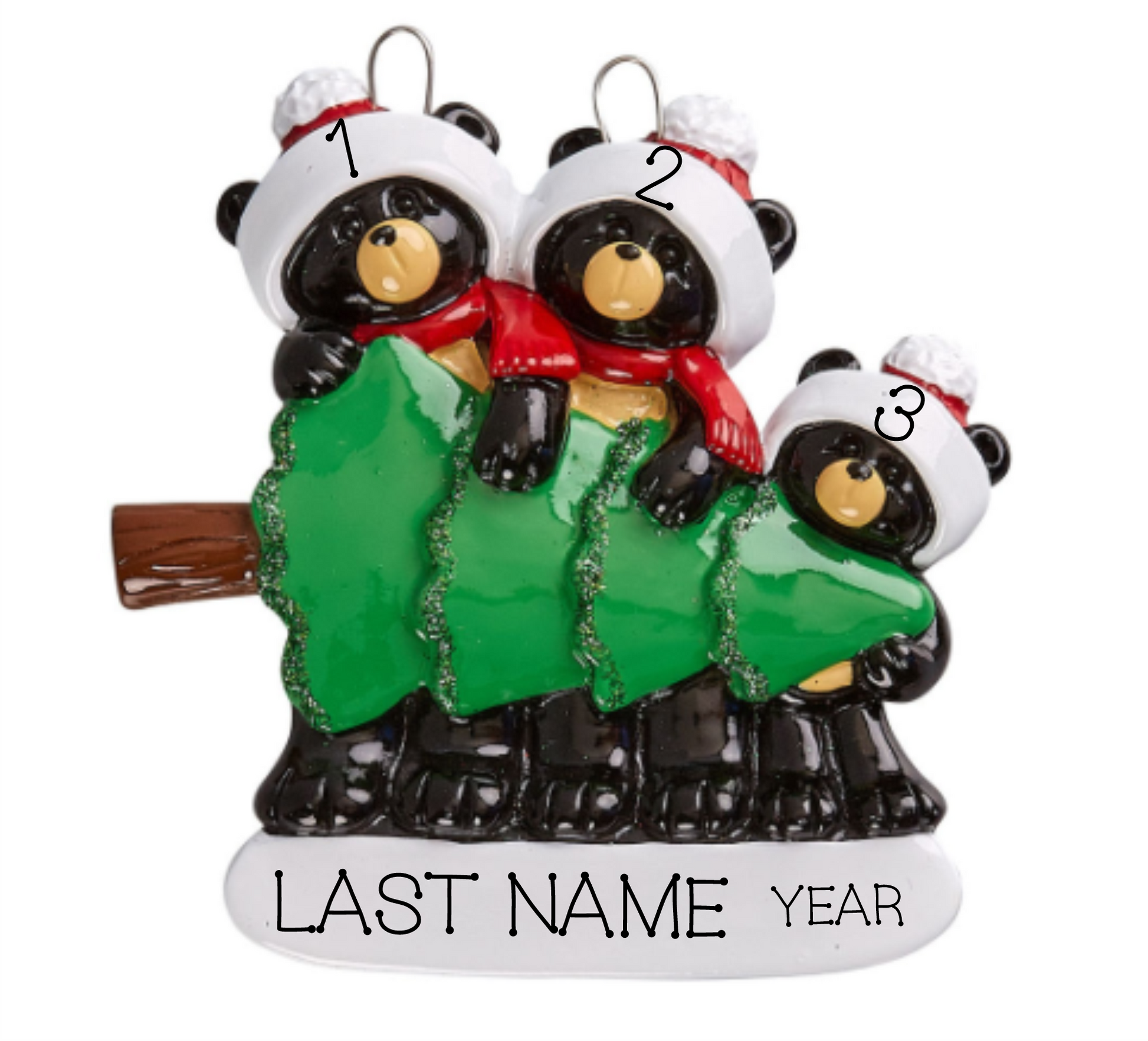 Black Bear Shopping- Family of 3 Personalized Ornament