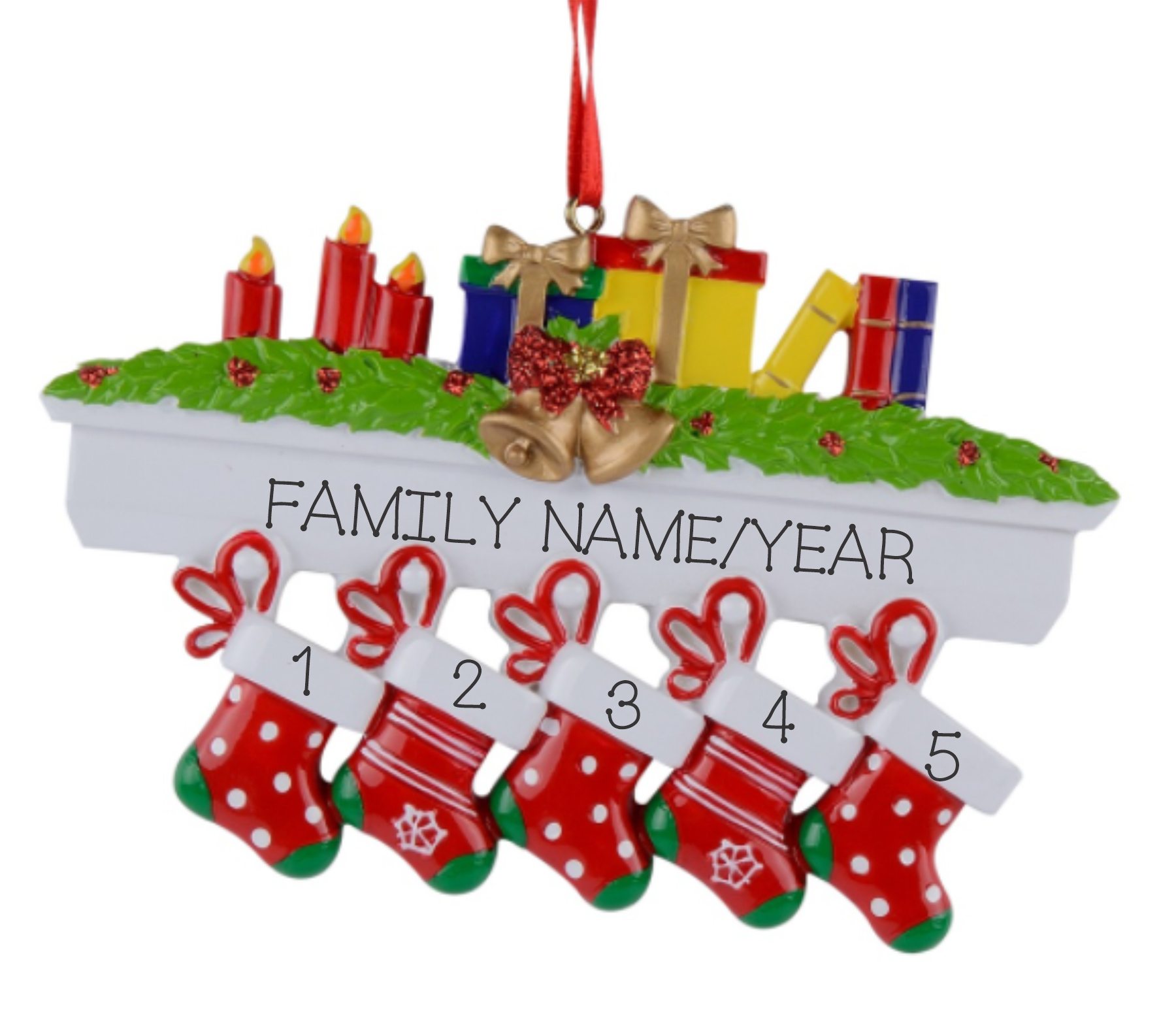 Colorful mantle with stockings, Family of 5