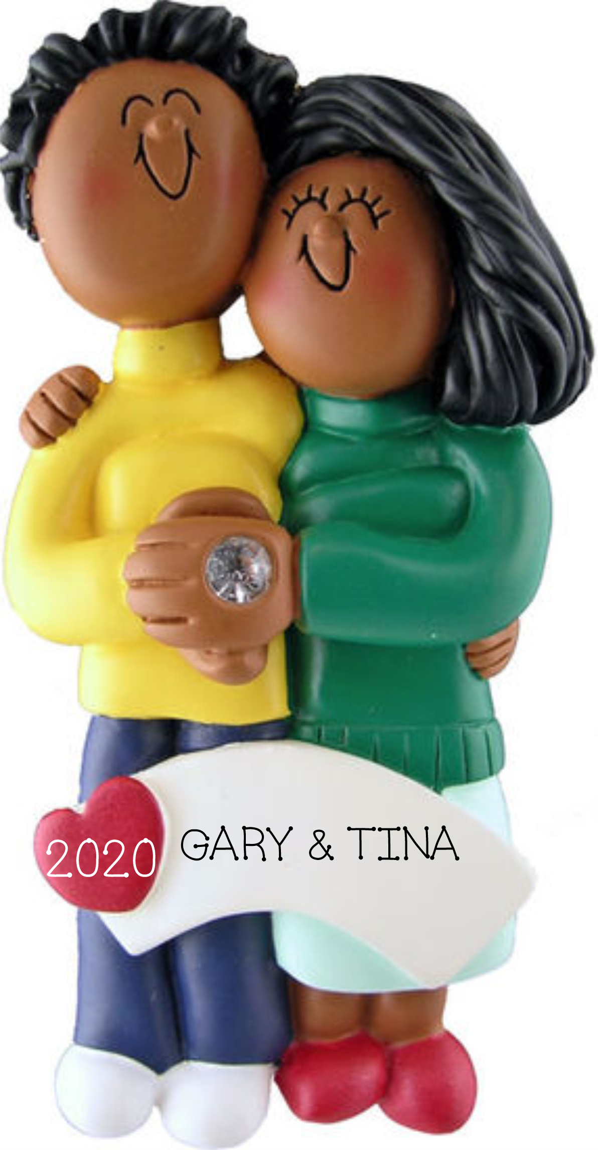 Engaged Couple, Dark Skin, Personalized Ornament