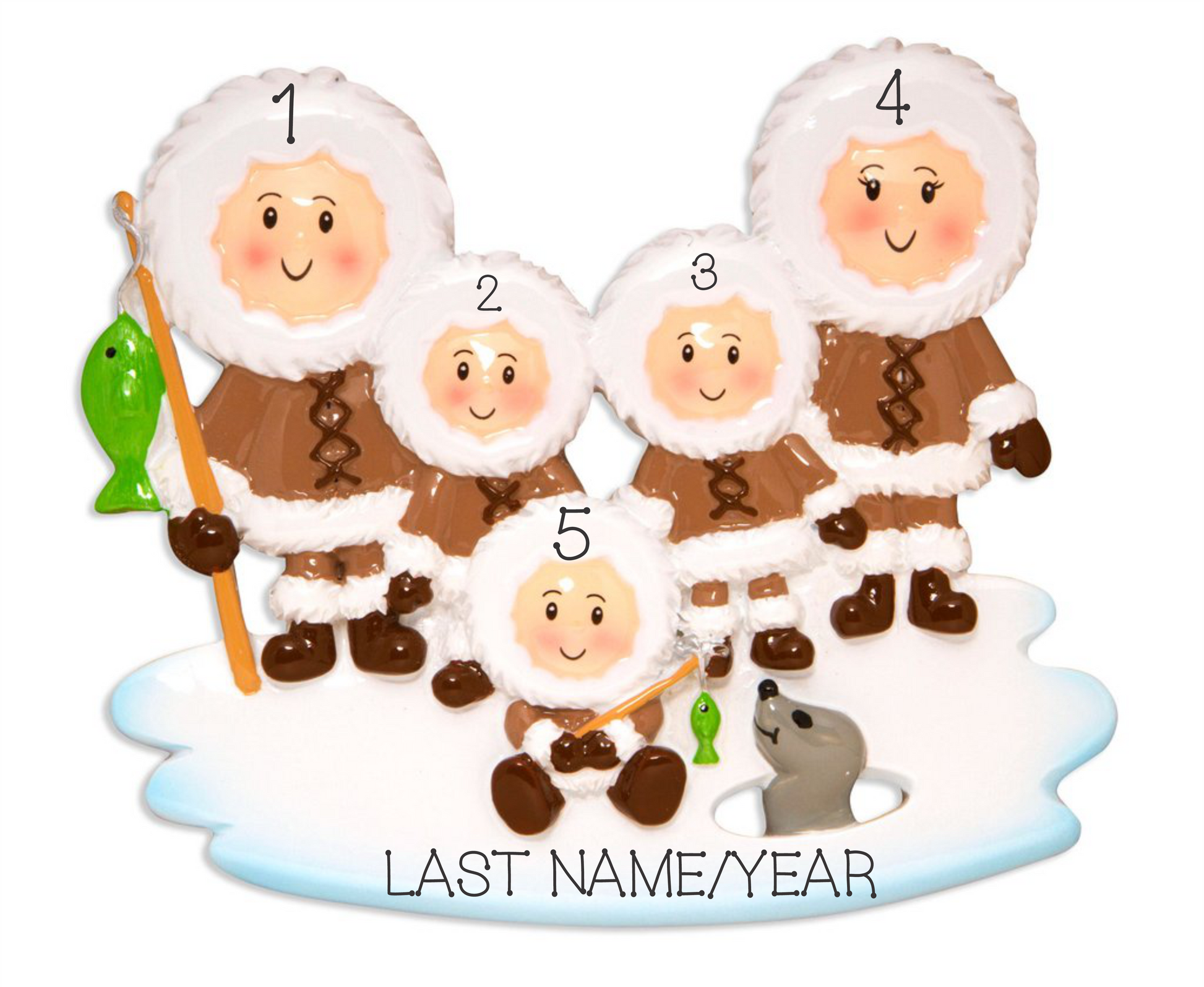 Eskimo Family Personalized Christmas Ornament- Family of 5