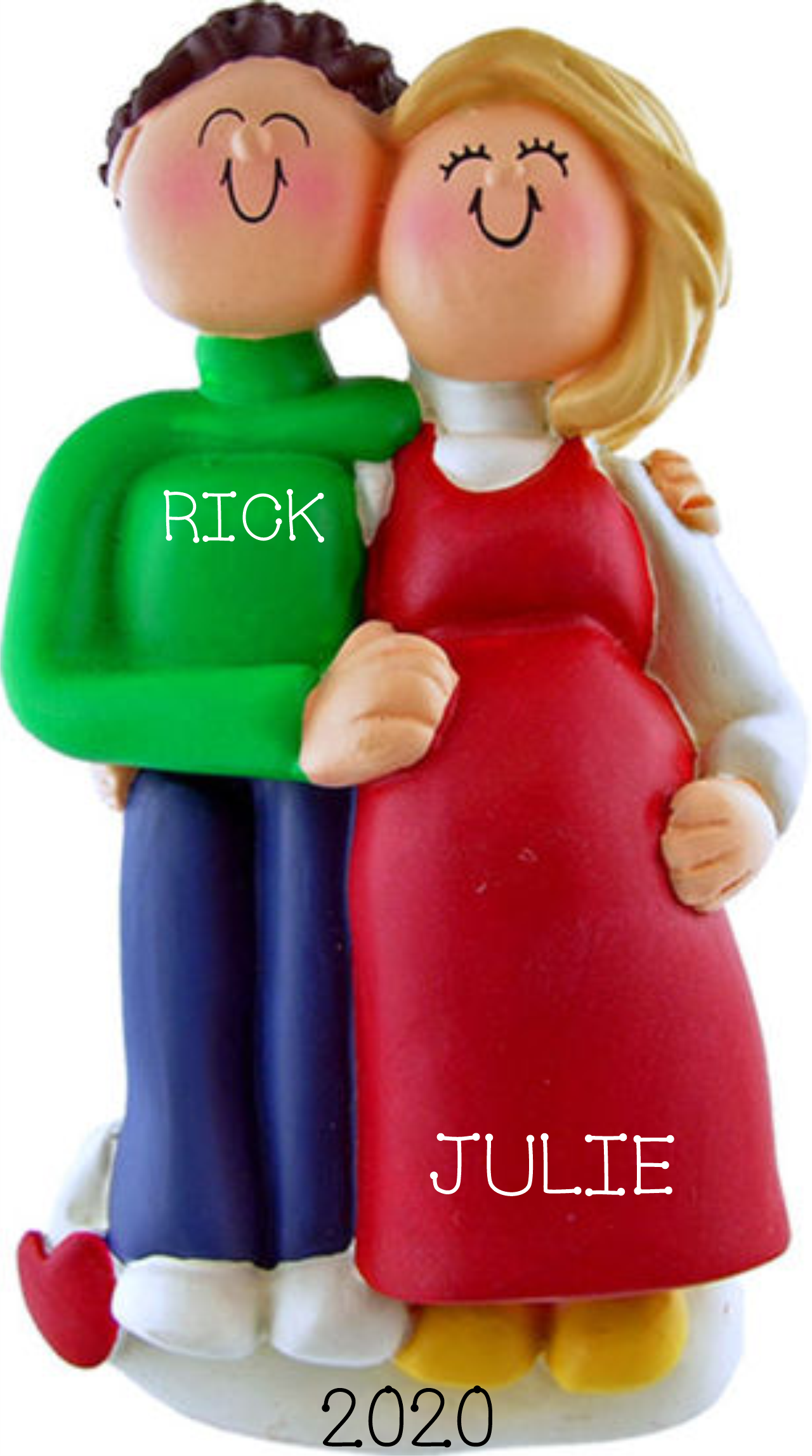 Pregnant/Expecting Couple, brown hair male/blonde female- personalized ornament