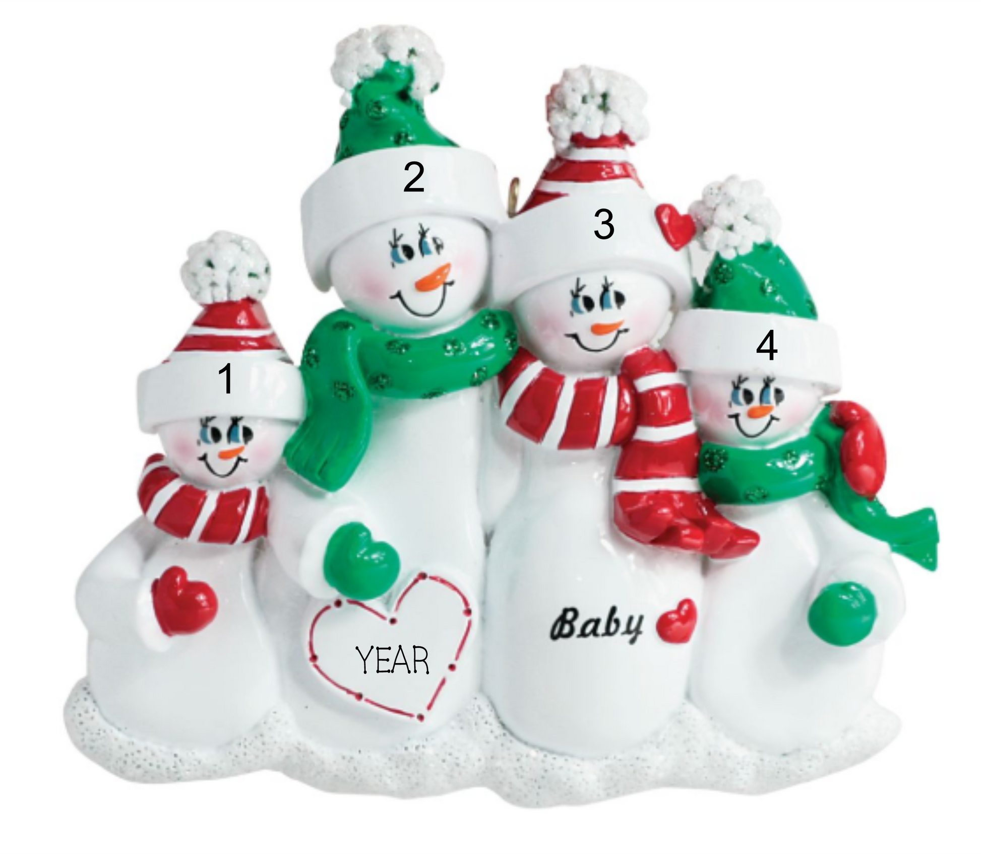 Expecting Snow Family Personalized Christmas Ornament- Family of 4