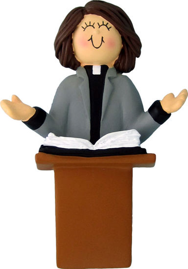 Pastor, Female, Brown Hair- Personalized Christmas Ornament