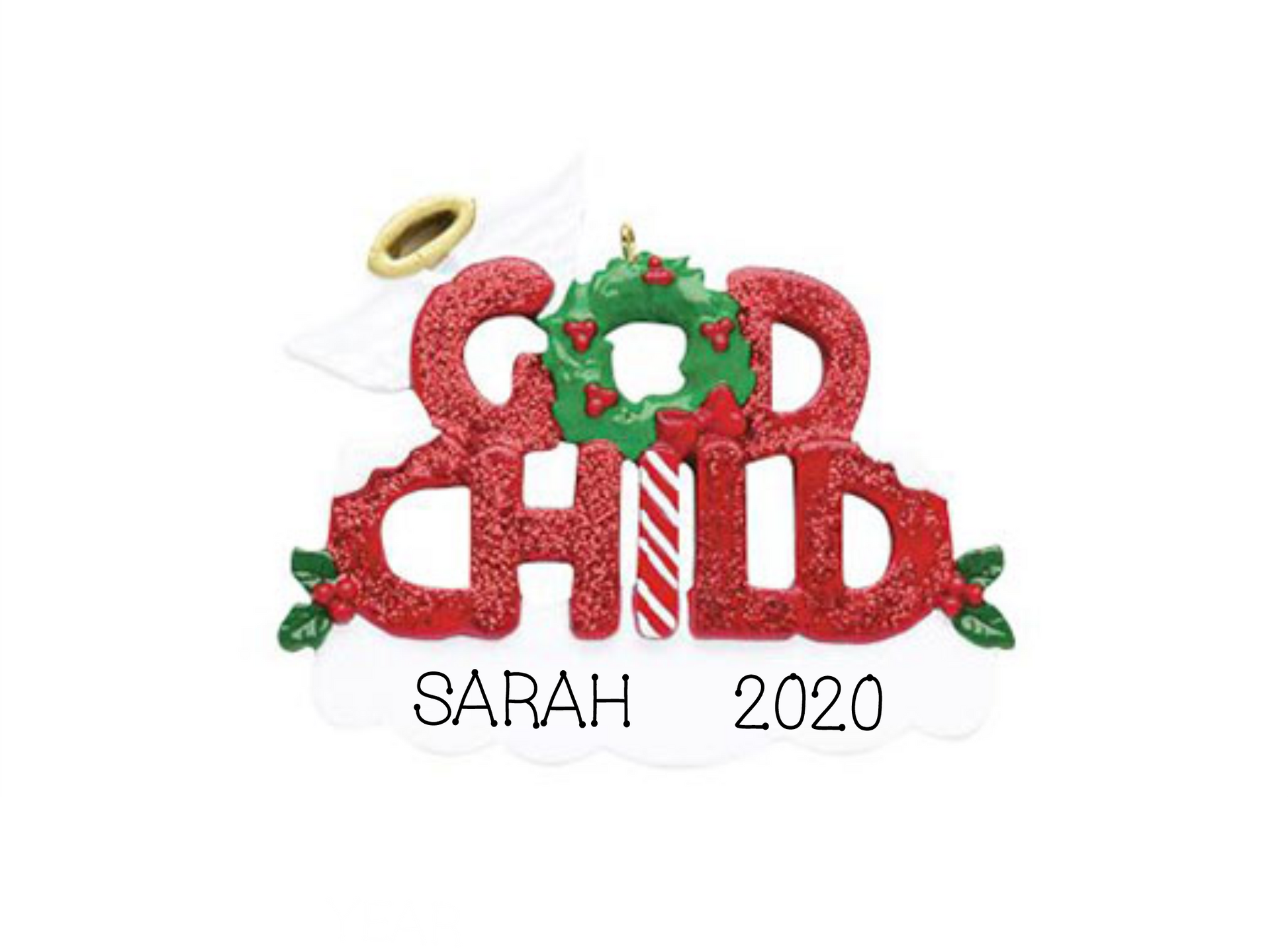 Are you on the hunt for the ultimate ornament for a God Child? Get this ornament personalized with her name and the current year.