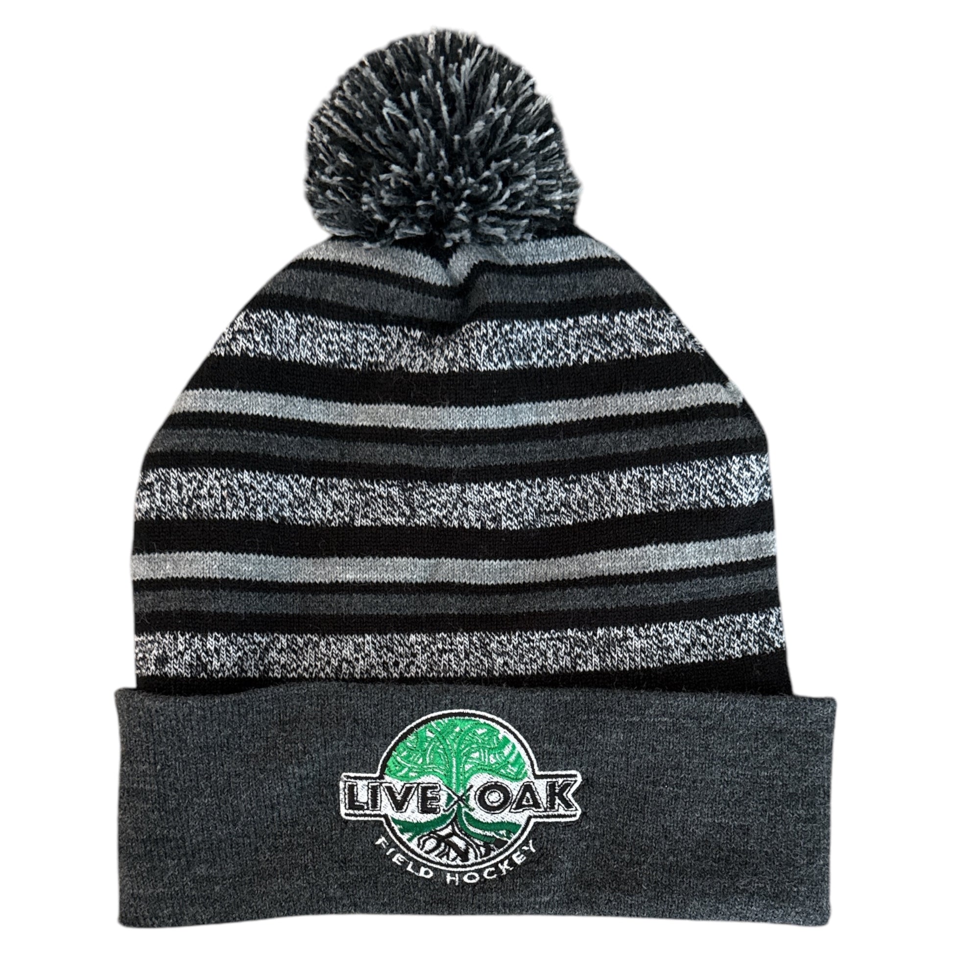 Live Oak Black Striped Pom Beanie Winter Hat (Clearance)