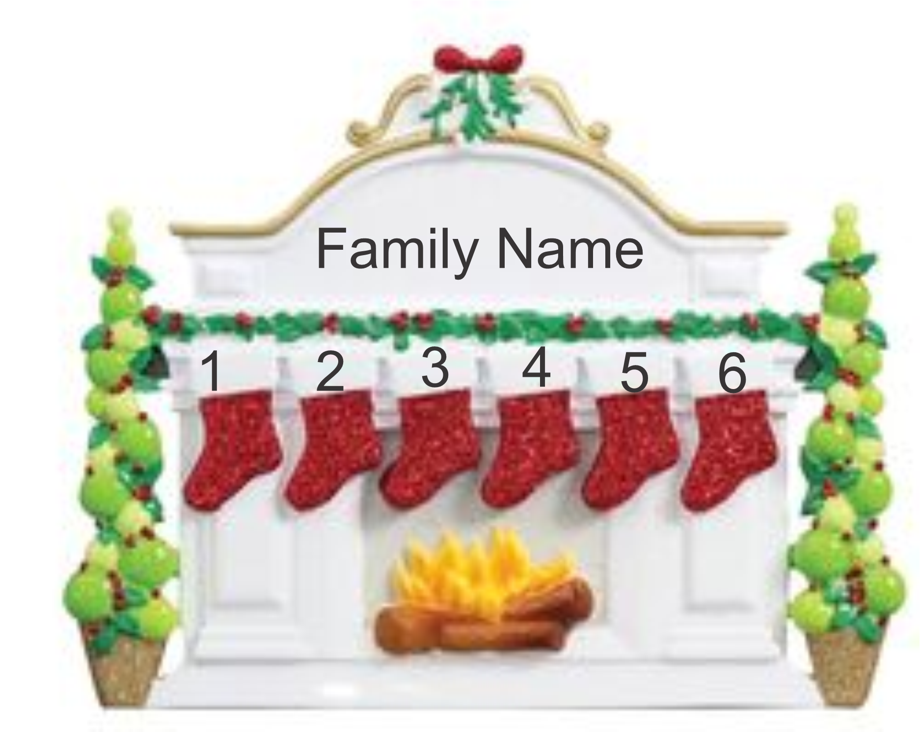 Mantle with 6 Stockings- Personalized Tabletop Decoration