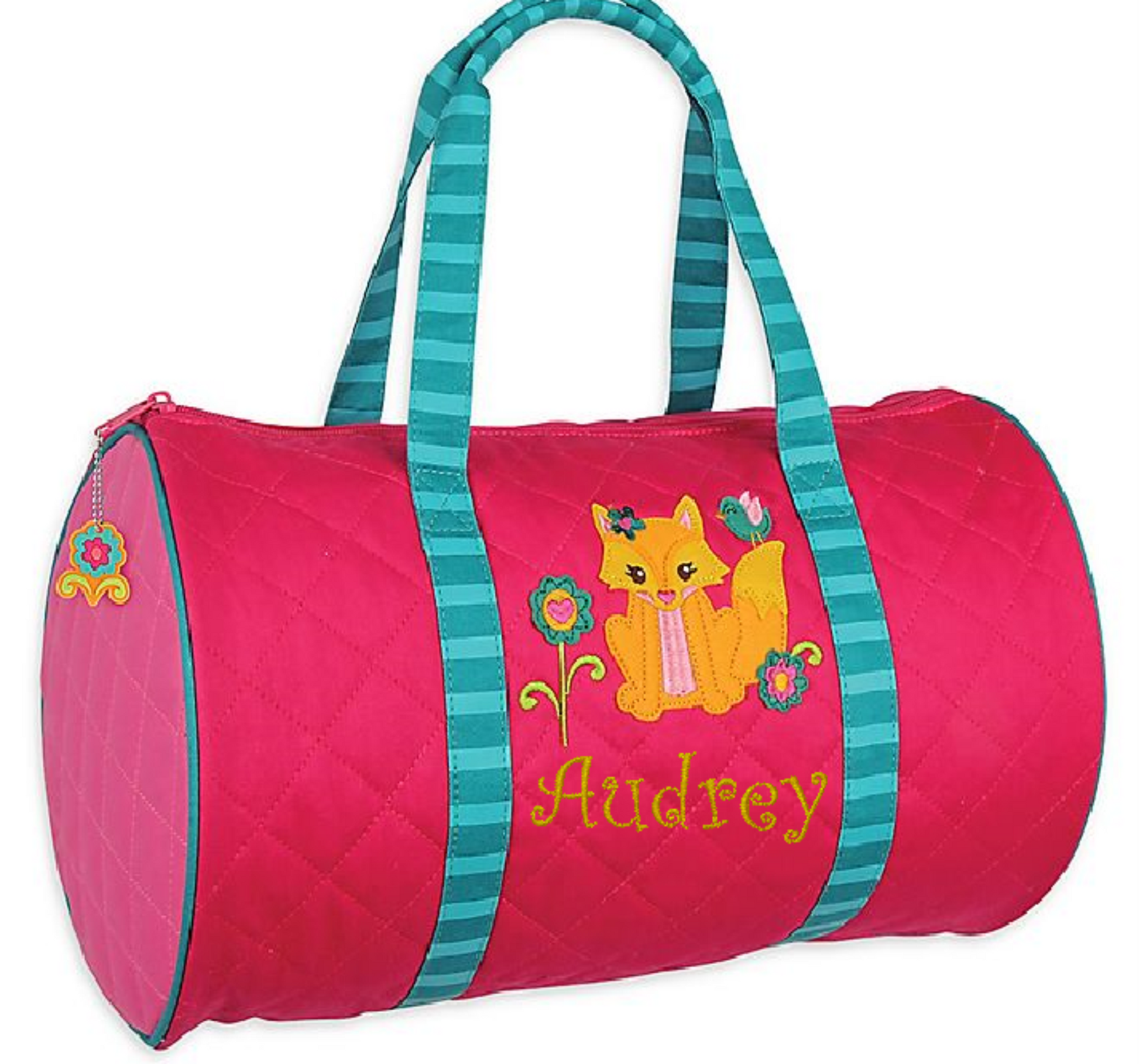 These embroidered duffle bags are perfect for a little one to use for a weekend getaway, a trip to grandmas or even for school use!
