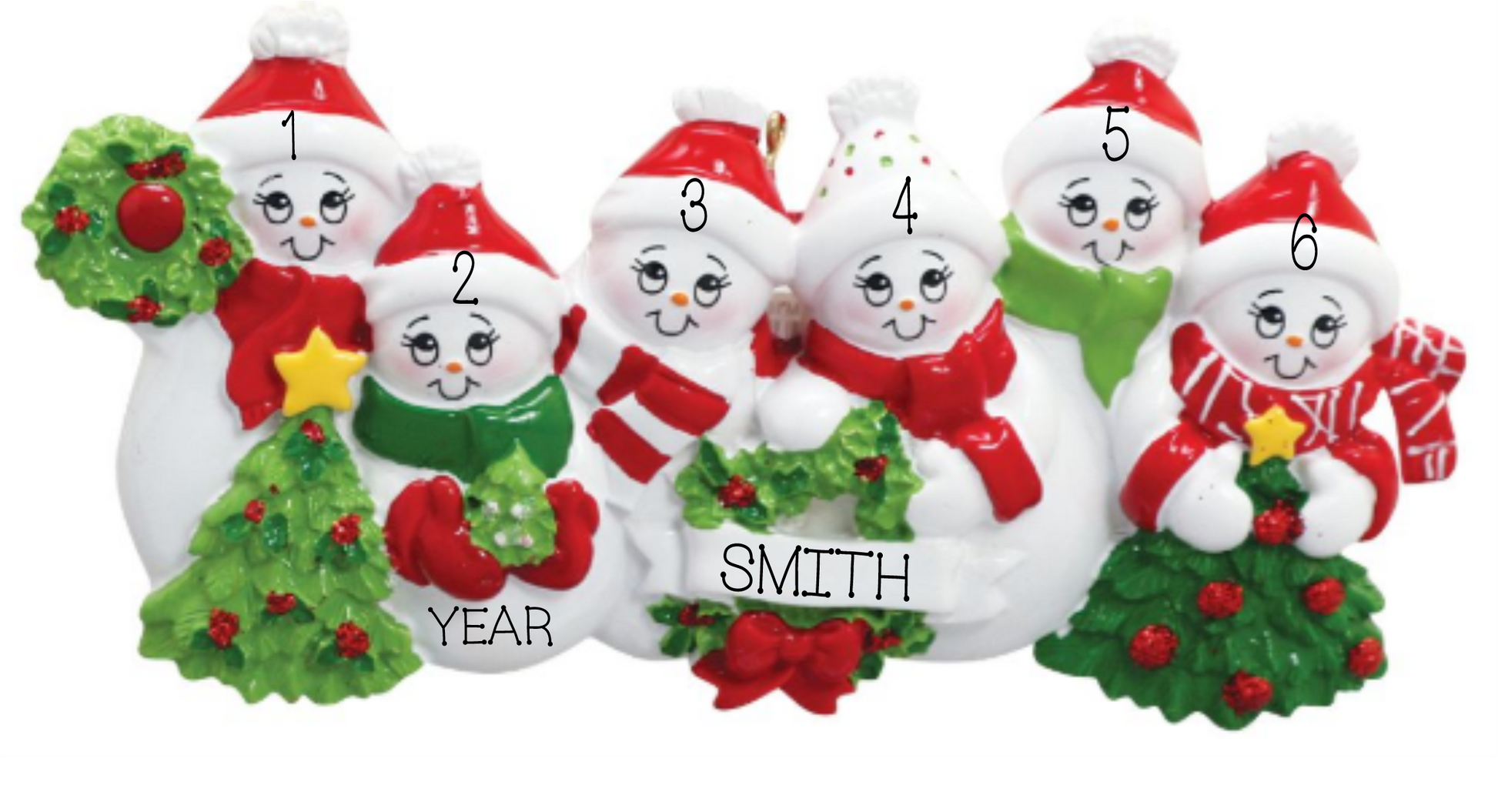 One of our BEST selling personalized ornaments! This cozy snowman family can be personalized with names, last names and the year.