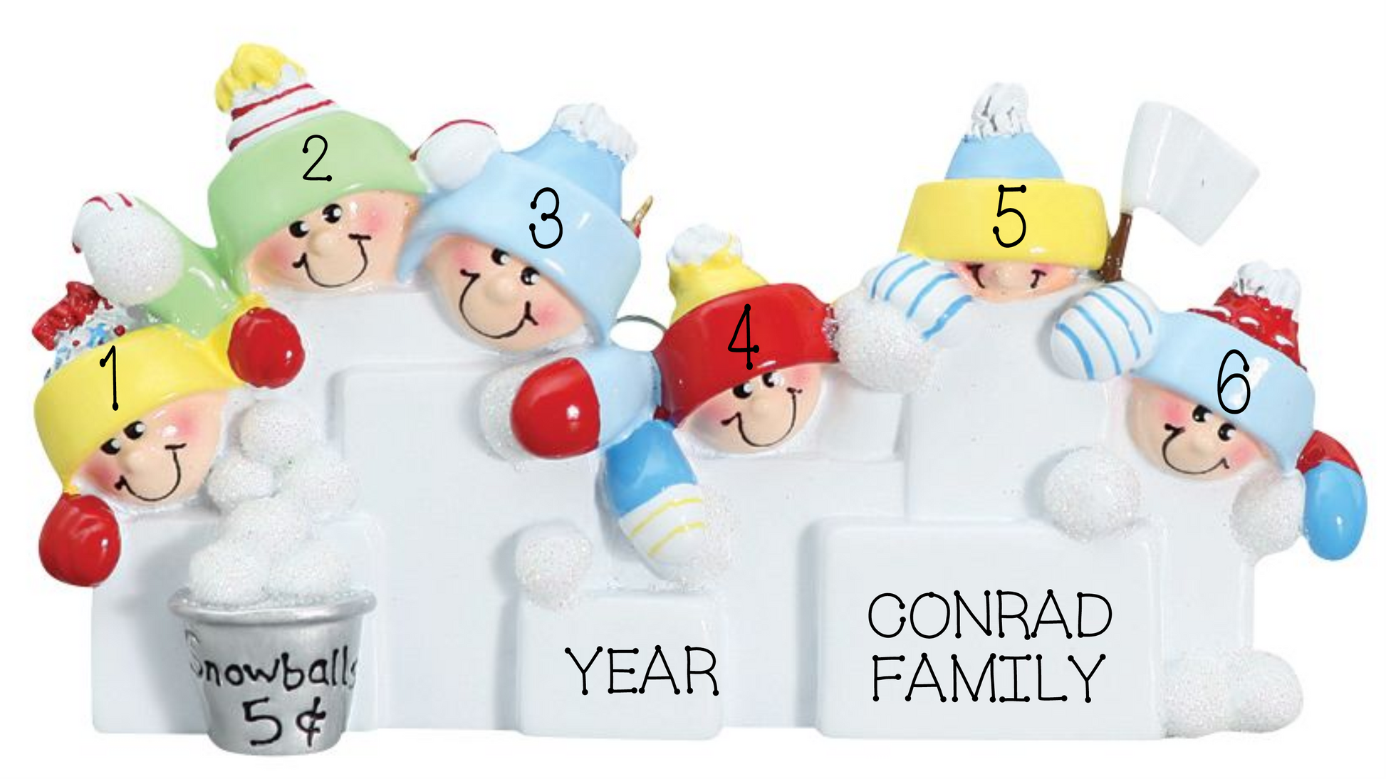 Snowball Fight- Family of 6 personalized ornament