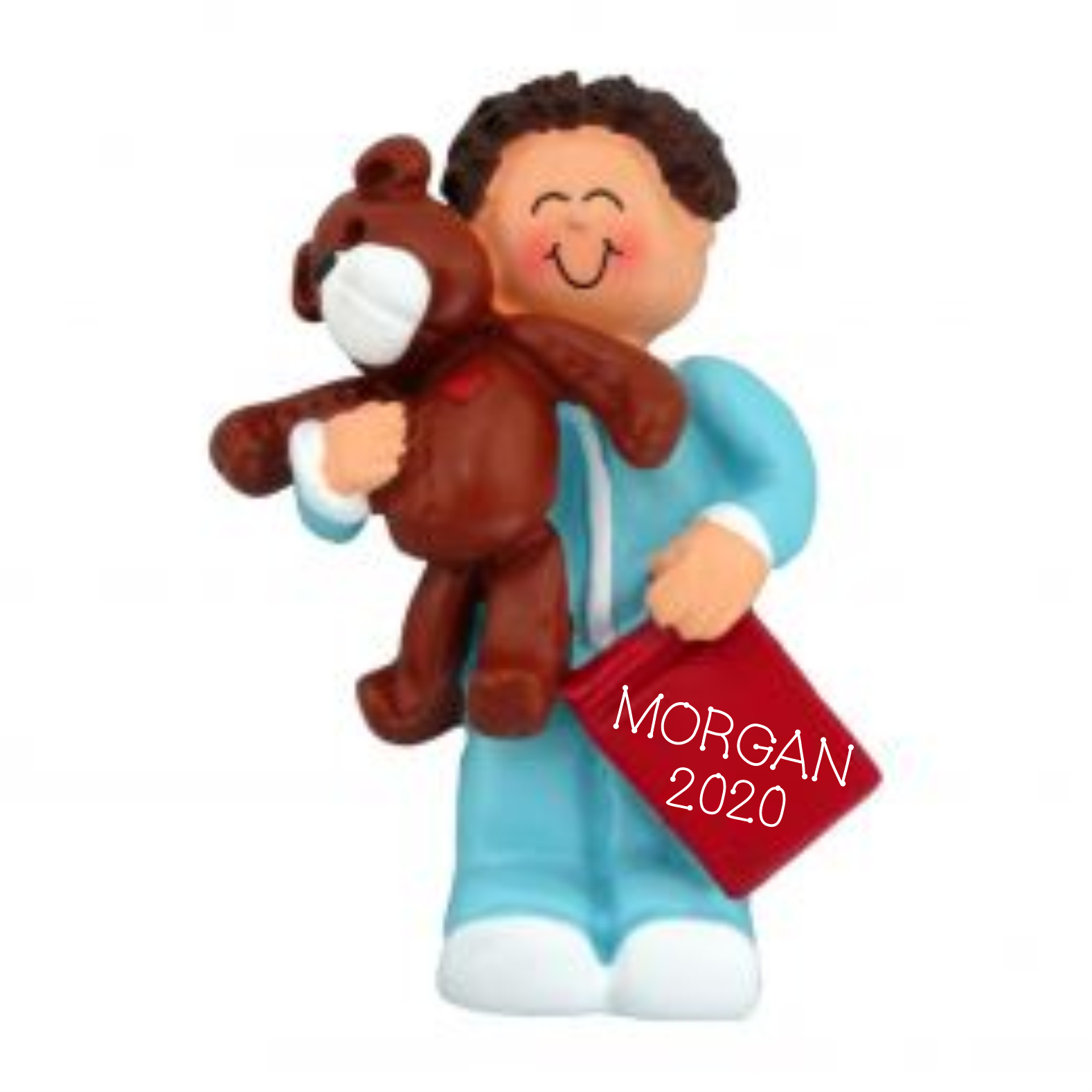Toddler Boy with Bear, Brown Hair Christmas Ornament