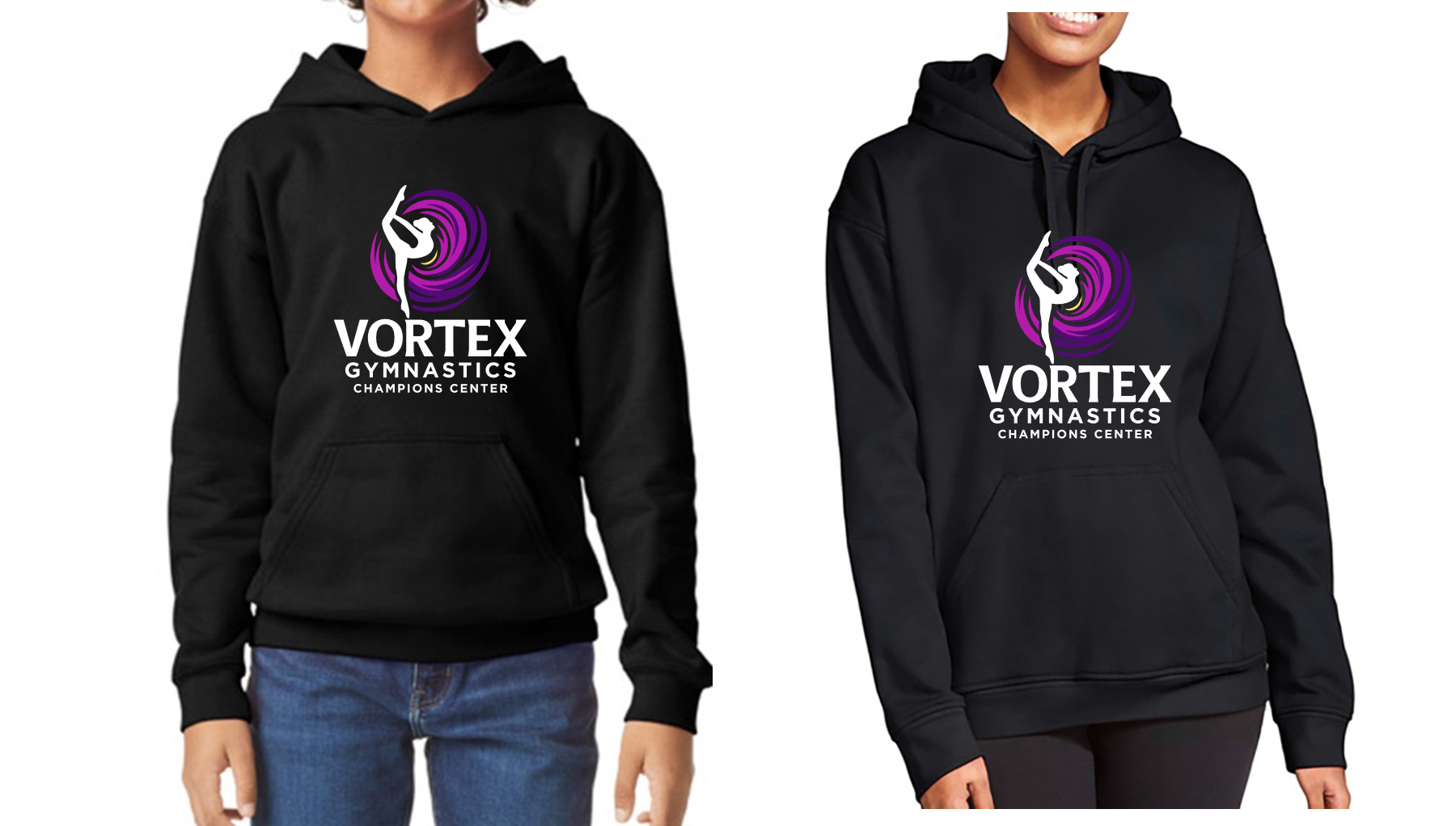 Wear your Vortex pride in ultimate comfort! These Gildan Softstyle hoodies showcase the Vortex Gymnastics logo printed on the front. Available in youth and adult sizes (youth does not include a drawstring; adult does)Youth Sizing: