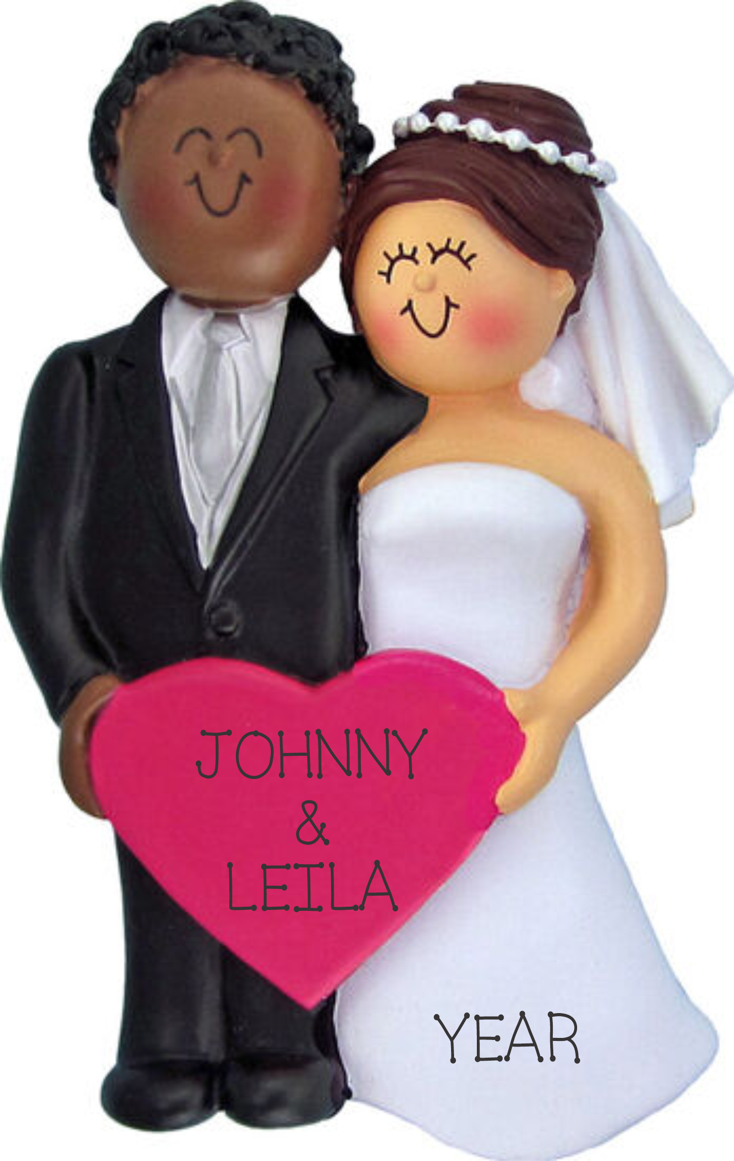 Wedding Couple Ornament-Dark Skin Male, Brown Hair Light Skin Female