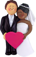 Wedding Couple Ornament- Light Skin Brown Hair Male, Dark Skin Female
