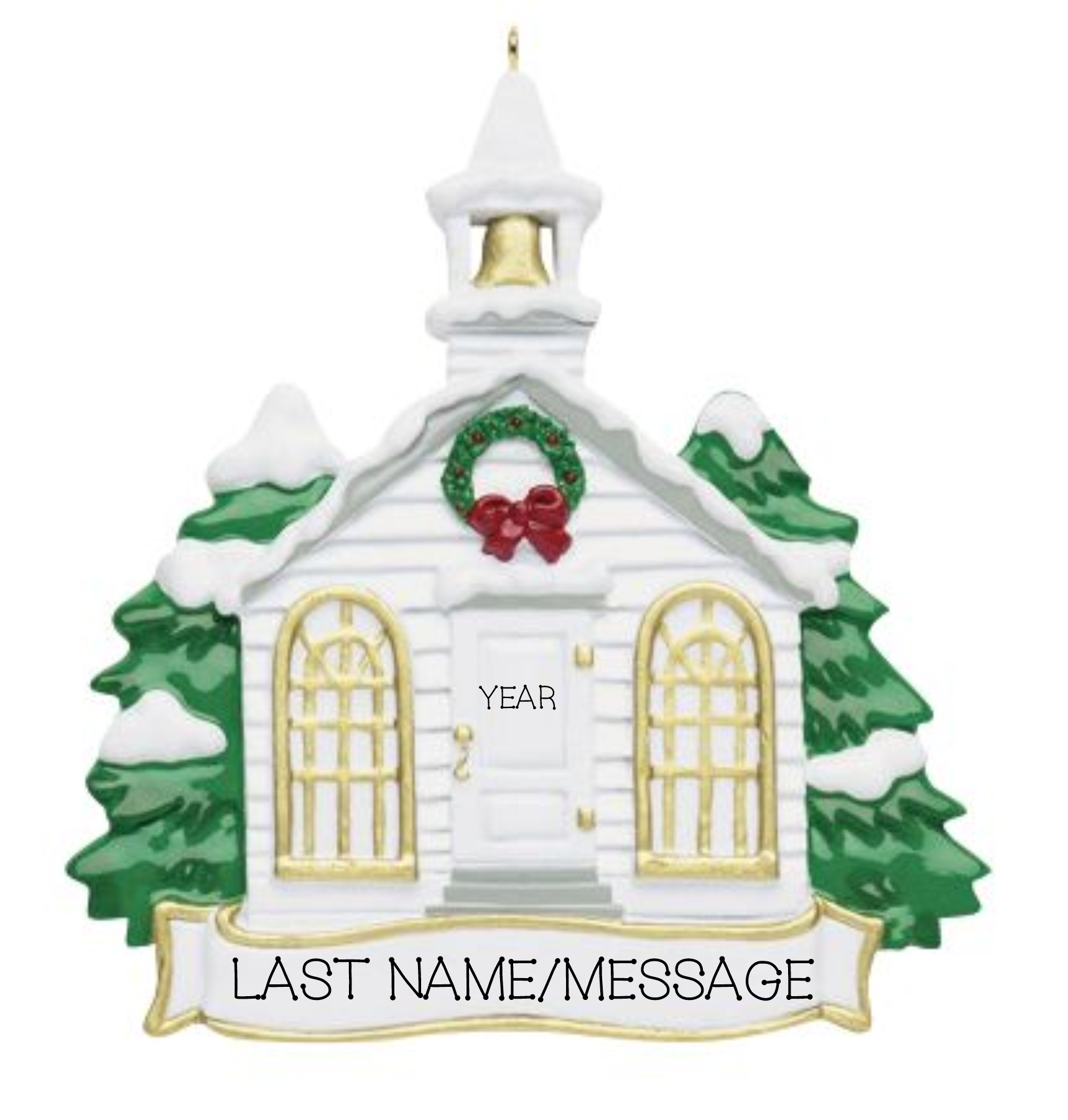 This church ornament is a great gift for a pastor, priest or church. Also looks great personalized with a family name.