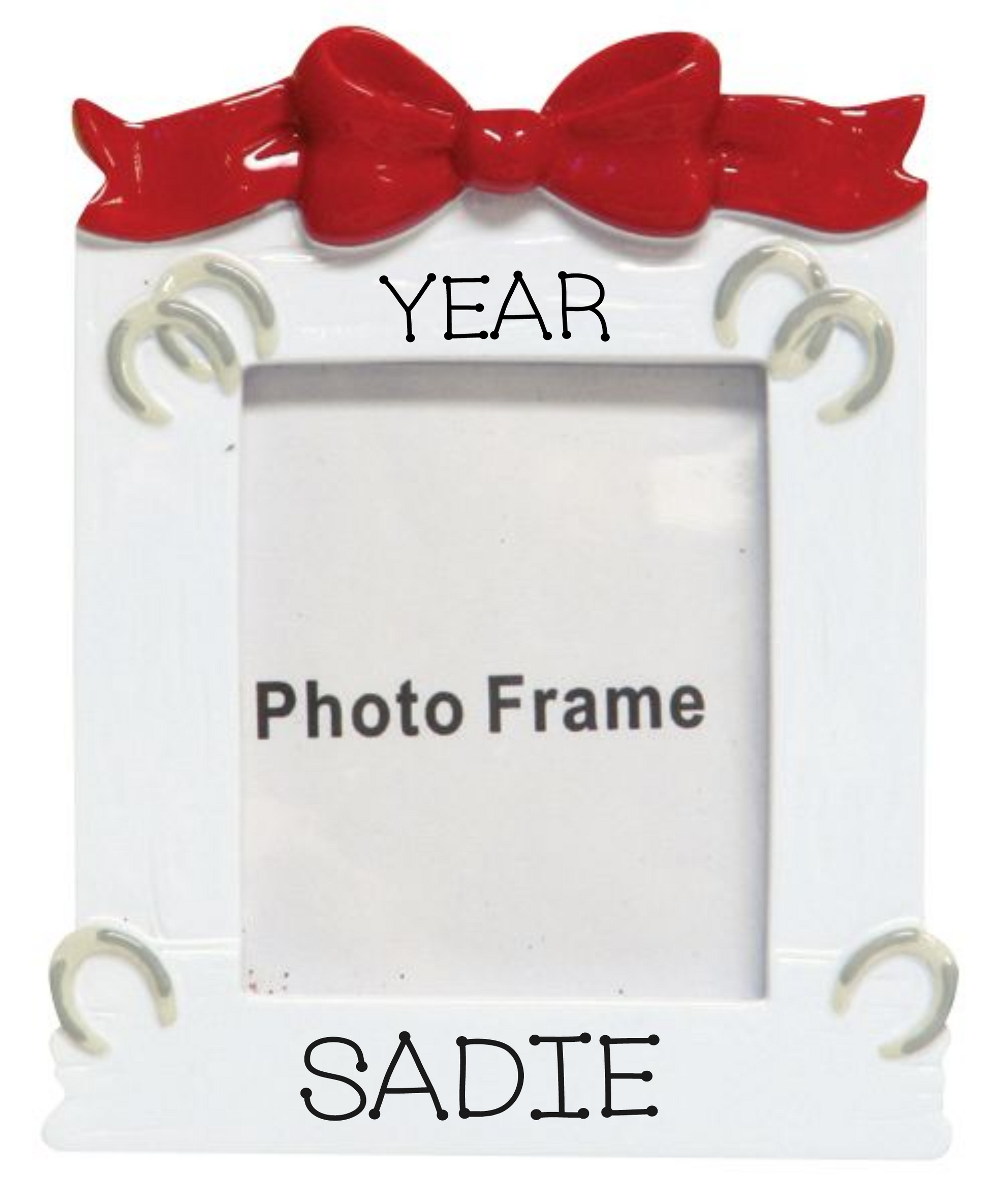 This ornament also has an easel back so it can be displayed on a table or mantle. We will add the horse's name... you add the photo....now you've got the perfect personalized ornament for your horse!